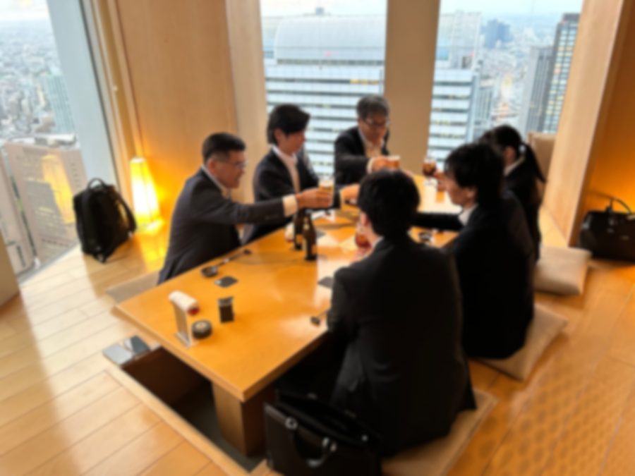 49階から見る絶景の眺望を背景に、美味しいお食事と美味しいお酒を楽しみながら、内定者同士での交流を深めるきっかけとなりました。